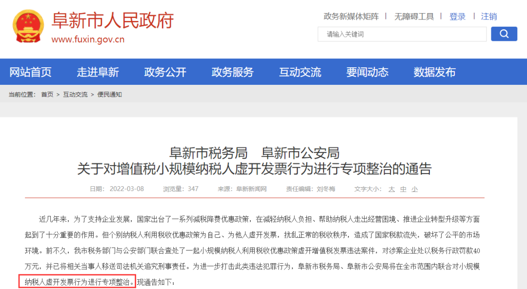 近日,阜新市稅務局發(fā)布最新公告:對全市小規(guī)模納稅人進行專項整治。